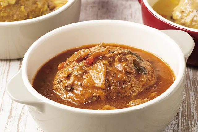 ハングリータイガー人気ニュー・ハンバーグステーキを、ご家庭でお楽しみいただけます。醤油ベースのデミグラスがやみつきになるオリジナルハンバーグソースもご一緒に。